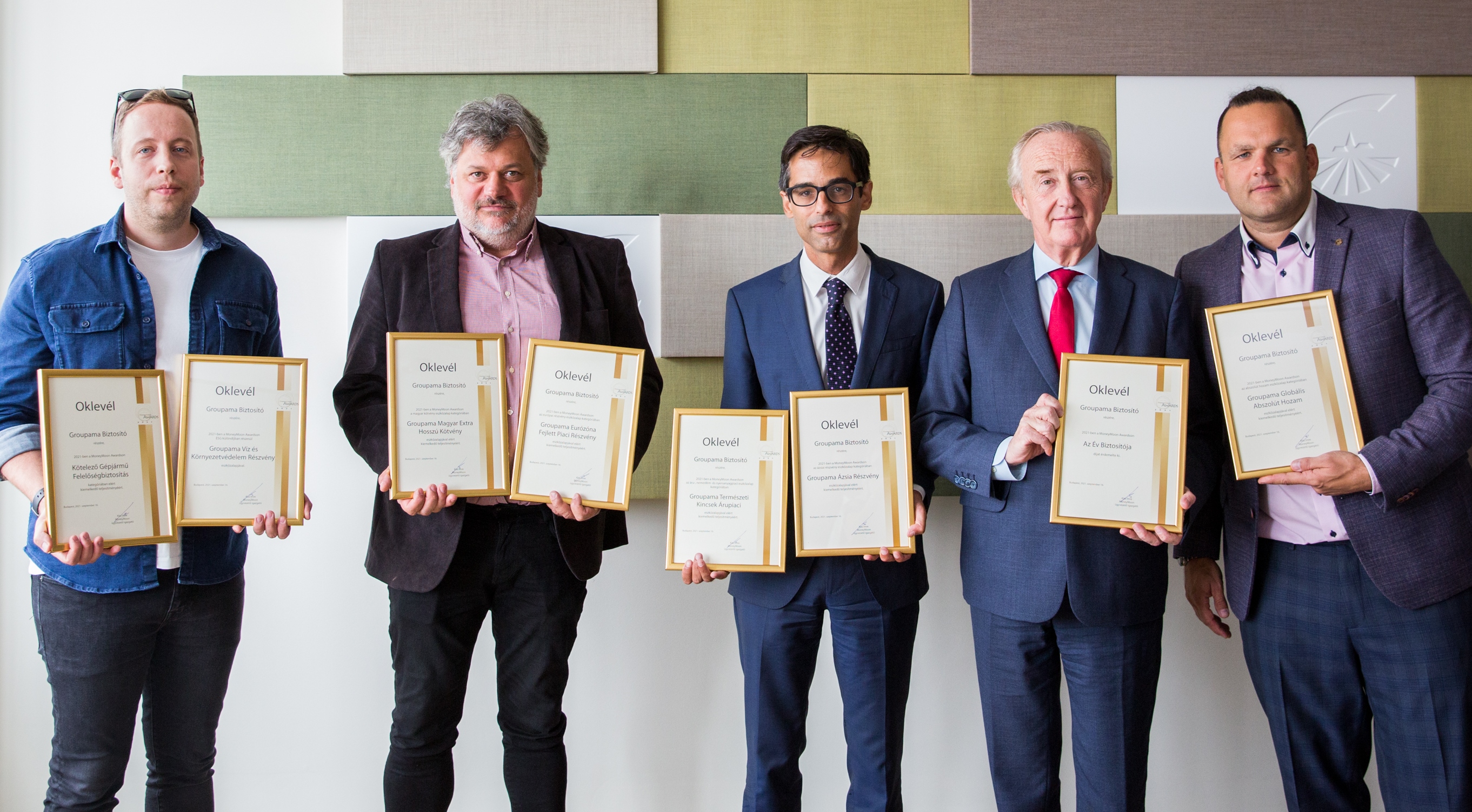 Idén is taroltunk a MoneyMoon Awardson! 23 biztosítási eszközalap kategóriának értékelése és díjazása során hat eszközalapunk is első helyen végzett, ezen kívül a Legjobb KGFB címet is elnyertük, ezzel abszolút kategória győztesek lettünk így ismét miénk az Év biztosítója cím! Az elismerést Bertrand Woirhaye vezérigazgatónk, Alexandre Jeanjean vezérigazgató-helyettesünk, Mocskonyi Péter befektetési vezetőnk és Szobonya László gépjárműbiztosítási termékmenedzsment vezetőnk vette át Kiss Imrétől a MoneyMoon ügyvezetőjétől. Köszönjük valamennyi kollégánk munkáját, akik hozzájárultak ehhez a szakmai elismeréshez!